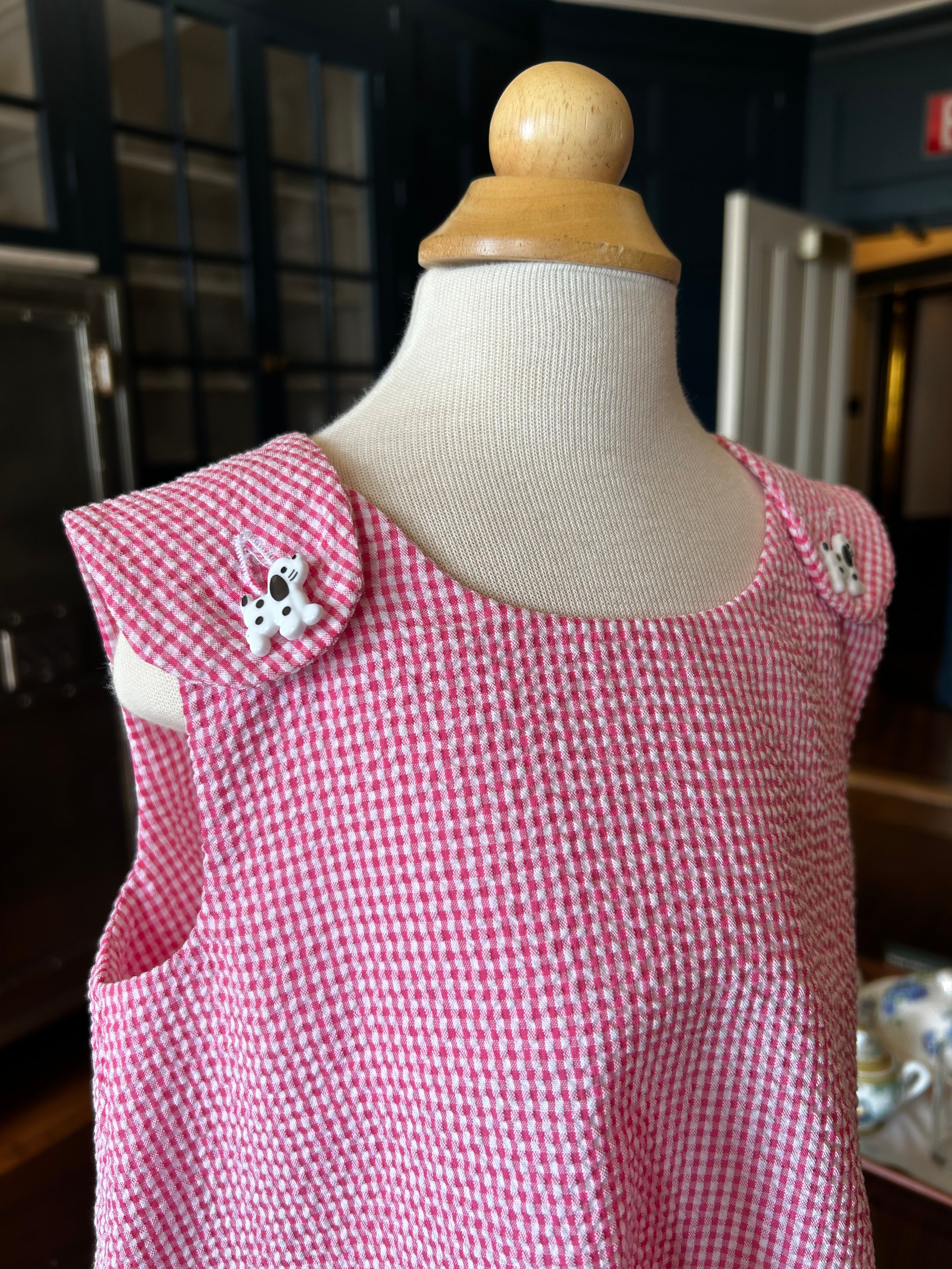 Chez Nana created this dress exclusively for Newport Restoration Foundation (NRF) in celebration of NRF's dedication to the preservation of craftsmanship and heritage across Newport. The dress represents American craftsmanship alive today, and the puppy buttons are a nod to Doris Duke's great affection for our canine friends.